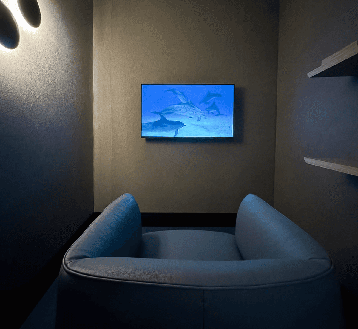 As sessões acontecem em salas projetadas para conforto e foco, semelhantes a cinemas particulares. A experiência é envolvente e agradável, sem comprometer a precisão técnica nem a profundidade terapêutica.